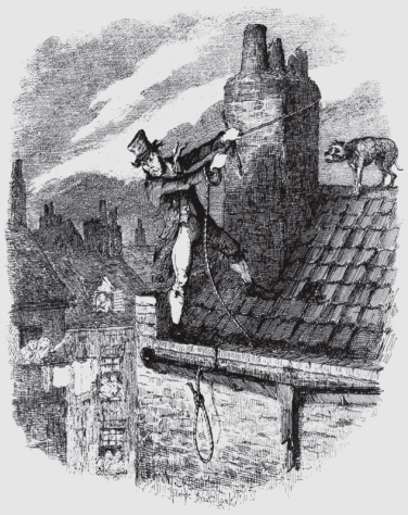 Seeking refuge in an abandoned warehouse, he is quickly tracked down by a large, angry mob. As the crowd of vigilantes begin to break down the door, Sikes decides to escape via the roof and, with the aid of a rope, plans to lower himself down into the relative safety of the Neckinger’s muddy ditch: