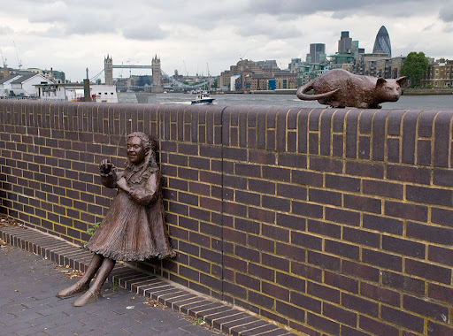 Several feet away, situated by the Thames wall, were two smaller statues representing Alfred’s daughter, Joyce and her little, pet cat.