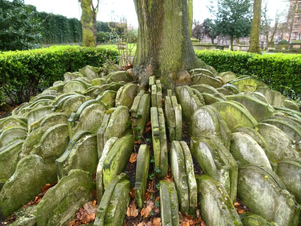 A number of tombstones from the torn up graves were retained by the Victorian planners, and grouped around a tree. This memorial of sorts is known as ‘Hardy’s Tree’ after the famous author who unhappily took part in the desecration.