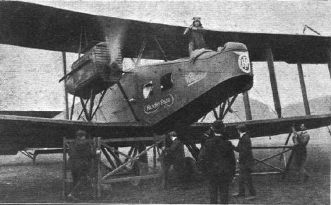 A Handley Page passenger plane at Cricklewood Aerodrome being prepared for a commuter flight to Paris, February 1920.