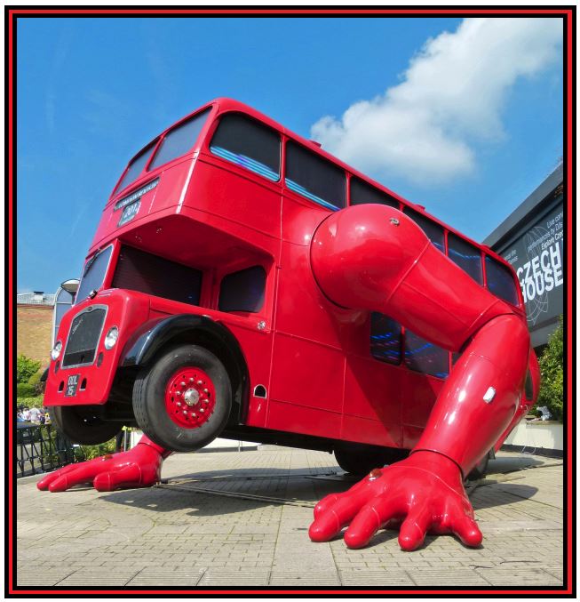 The ‘Booster Bus’… an innovative, moving sculpture by David Cerny which took pride of place outside the Czech Republic’s national pavilion in Islington during the 2012 Olympics.