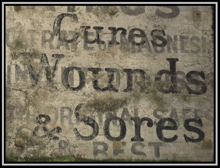 When you look at the full sign, you can see that it was Bates’s Salve that was claimed to cure wounds and sores.