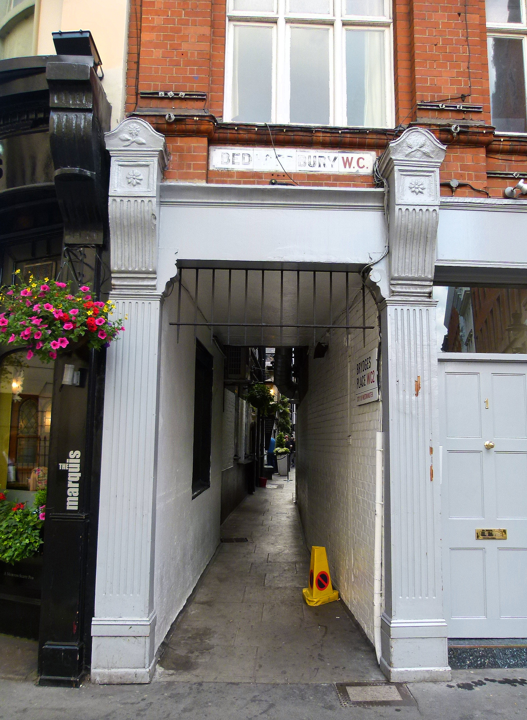 Running for approximately 250 ft. this secretive passageway is called ‘Brydges Place’ and provides pedestrians in the know with a quick link between St Martin’s Lane and Bedfordbury (just behind Charing Cross Police Station).