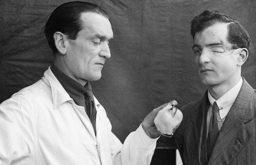 A number of these patients were treated by the artist, Francis Derwent Wood who crafted delicate masks to cover such deformities.