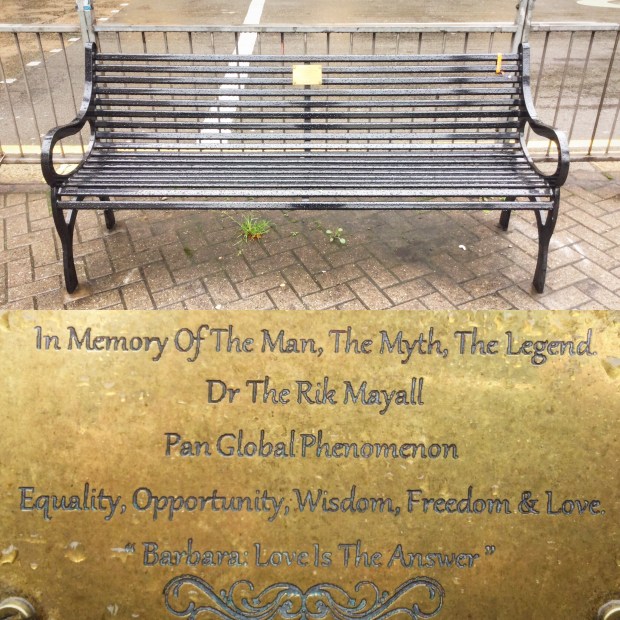 Rik Mayall’s bench and plaque, Hammersmith Broadway