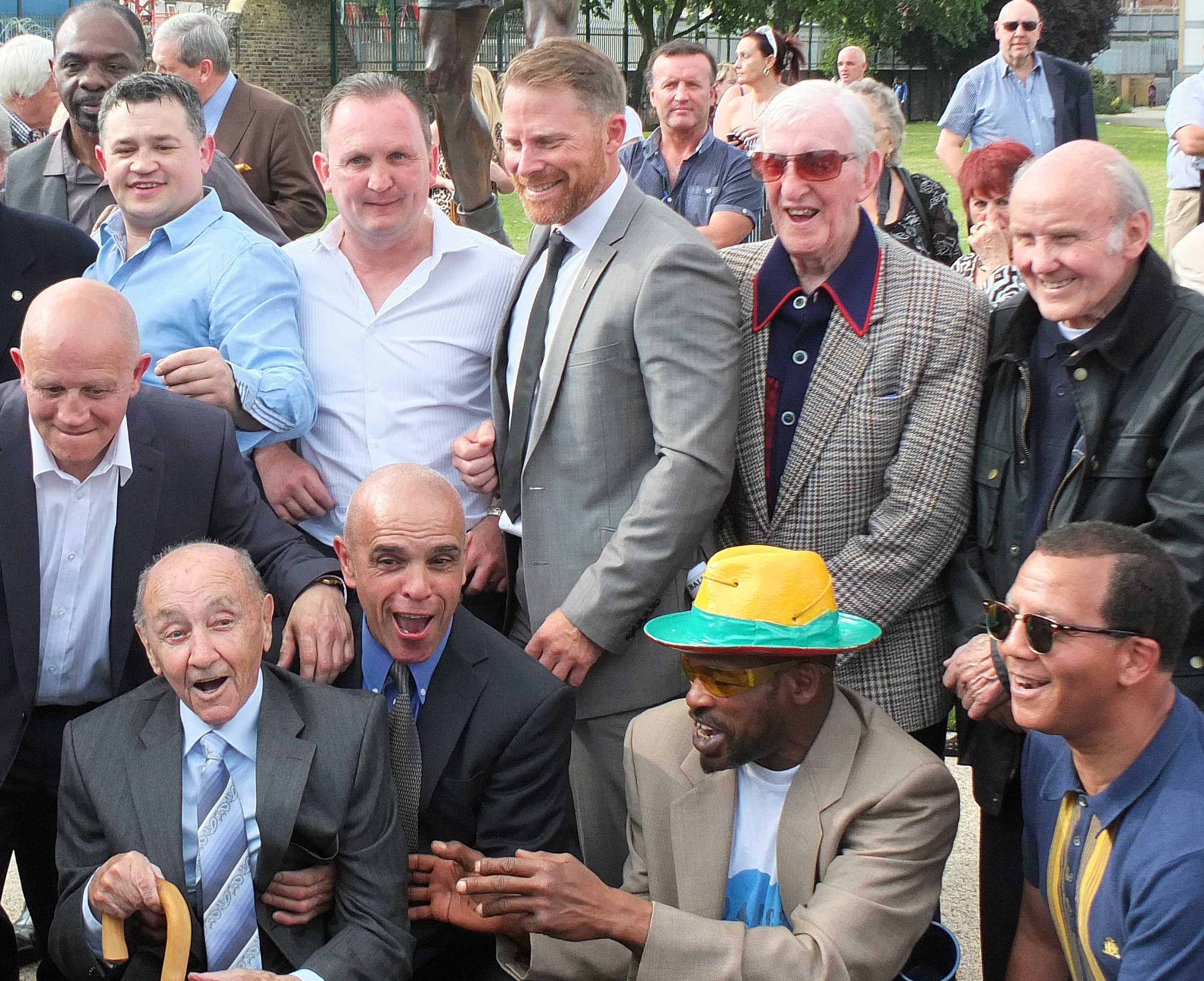After the unveiling, a group of ex-boxers gathered beneath Teddy’s statue for a fun photo-shoot.