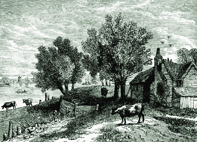 Contemporary sketch of the Thames showing the proximity of Millbank Penitentiary to the Houses of Parliament
