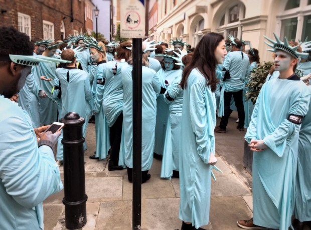 A group of protestors gather for a protest near Grosvenor Square, April 2017