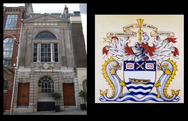 Watermen’s Hall and crest (photos: Wikipedia & National Maritime Museum)