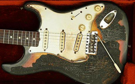 Jimi’s burnt guitar… now a prized collector’s item (image: Telegraph)