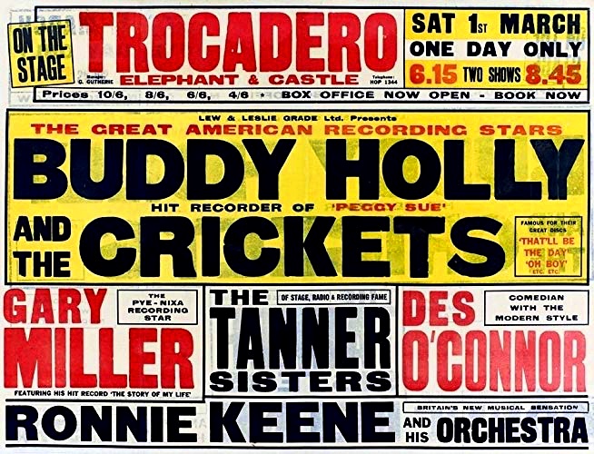 1958 poster advertising Buddy Holly & the Crickets… see When Buddy Came to London