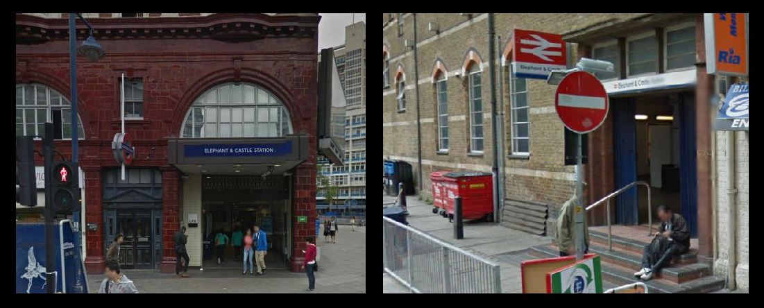 (Just to clarify, there are TWO Elephant and Castle Stations- an Underground one and a British Rail one, more or less opposite each other!)